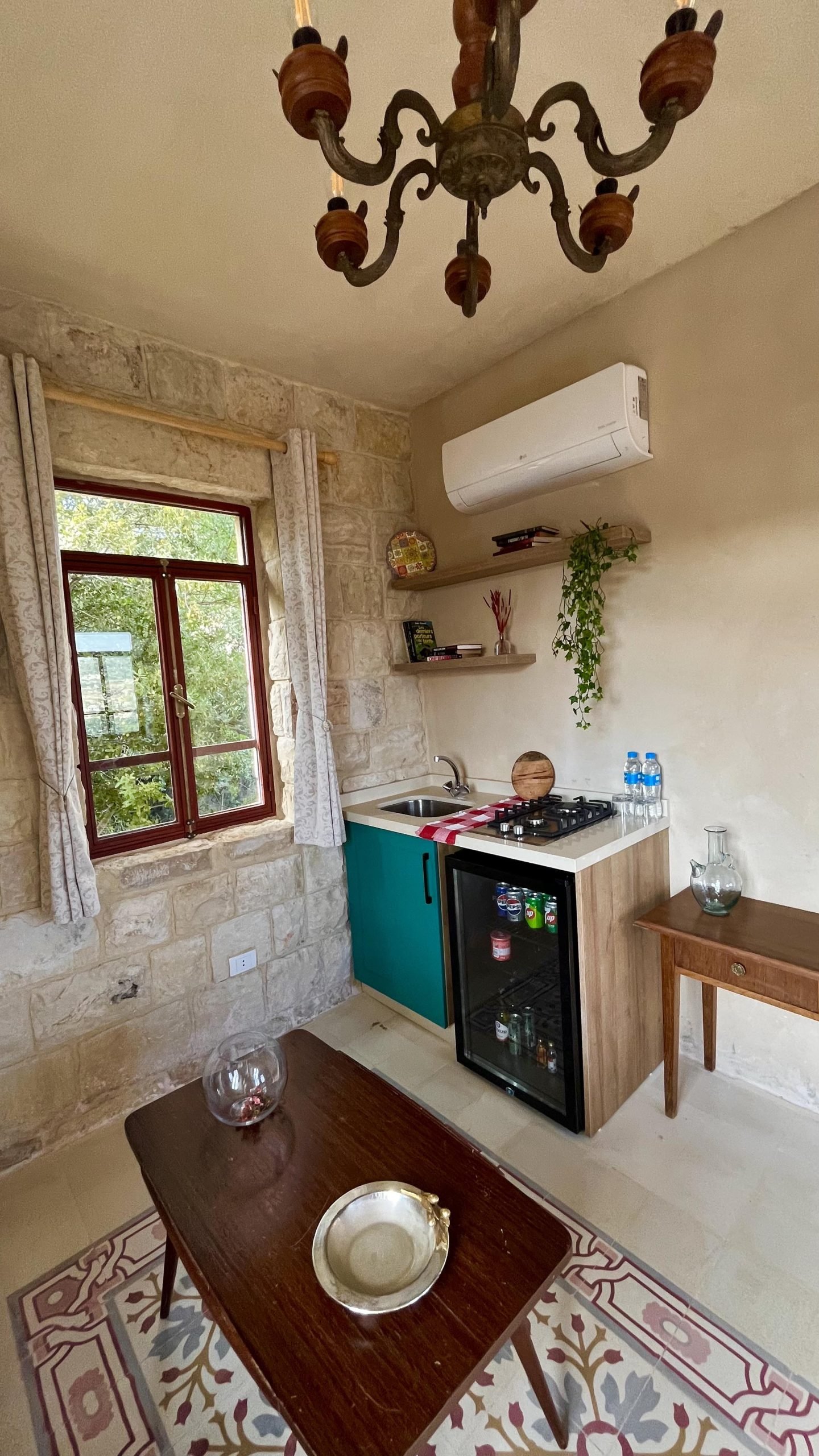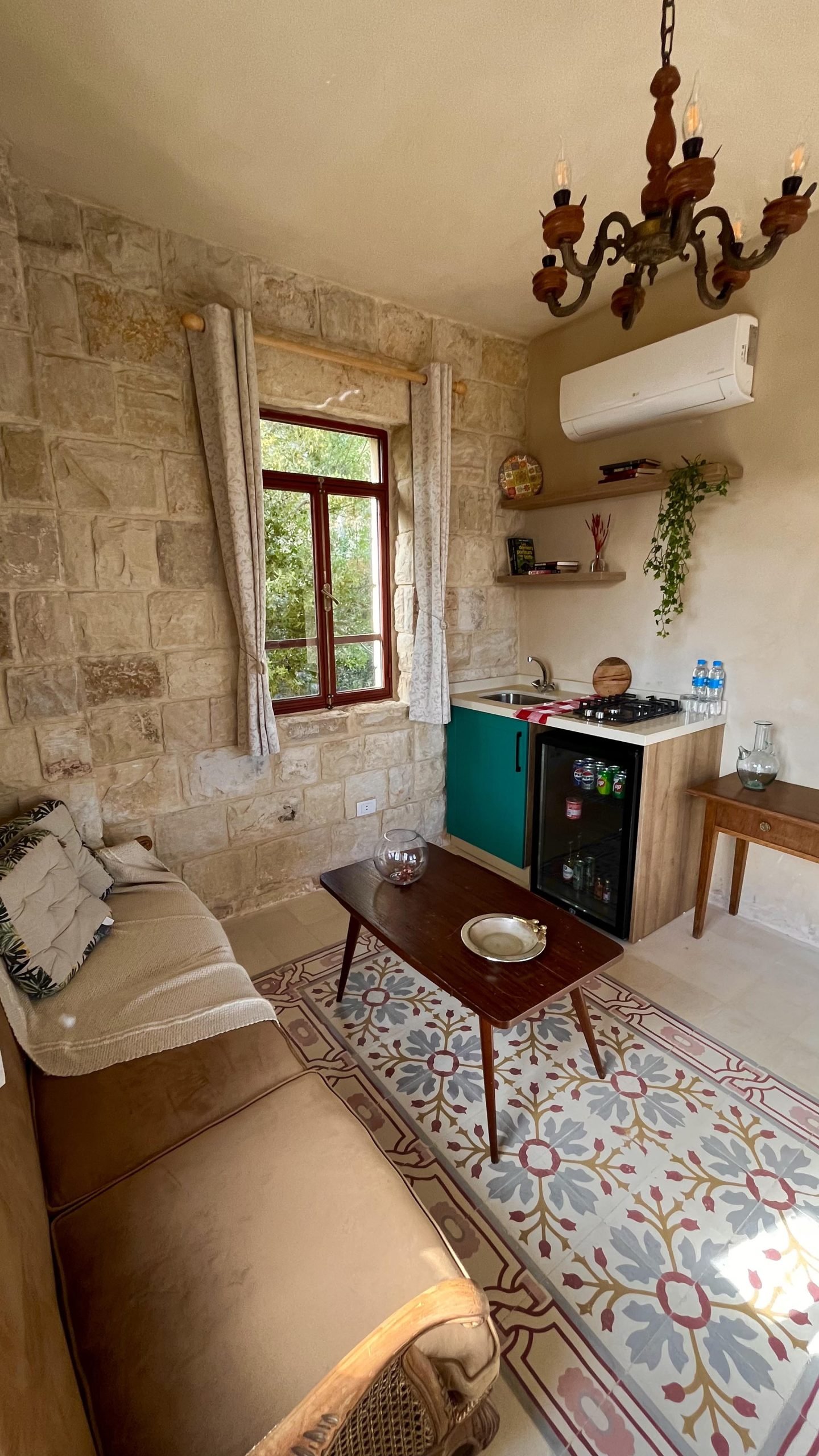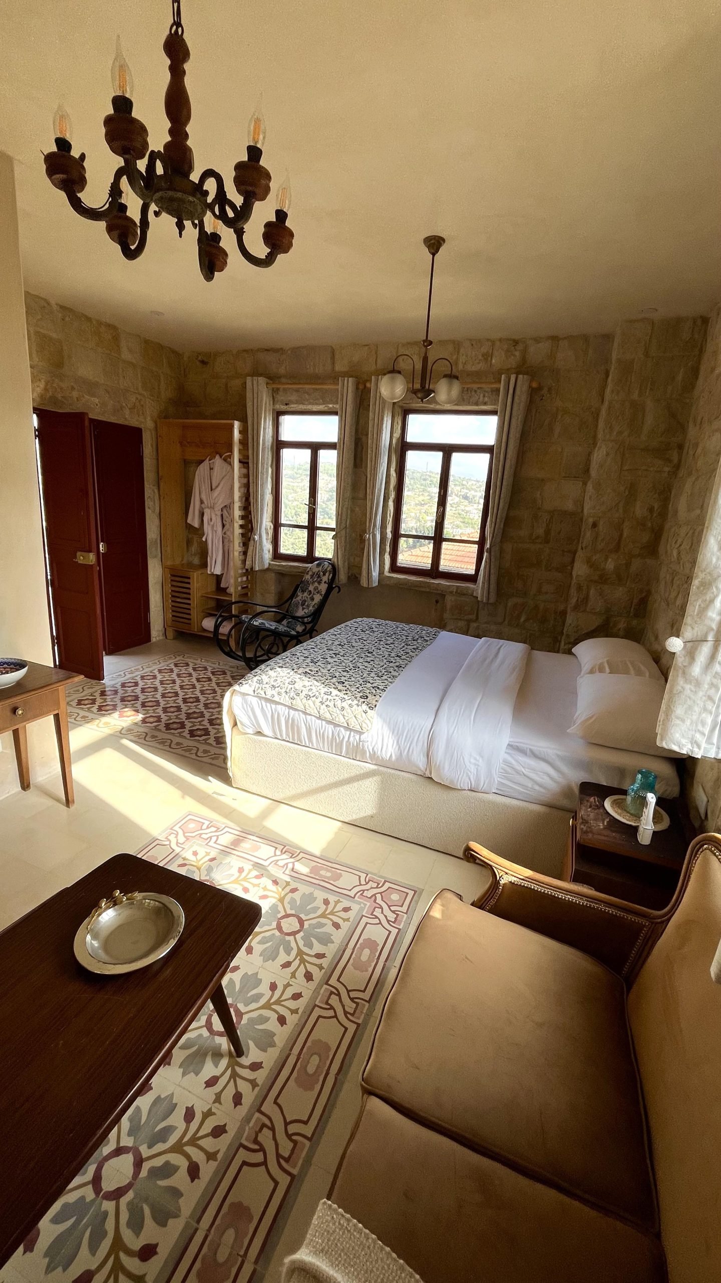 A tribute to timeless grace, Beit al Sitt is where elegance meets heritage. Tucked within the stone walls of Qasr Tabet, this intimate guesthouse features a charming master bedroom, a traditional-style kitchen, and a warm sitting area—ideal for serene mornings and quiet afternoons. Adorned with handpicked vintage pieces, embroidered linens, and sunlit windows overlooking the Shouf hills, Beit al Sitt evokes the refined spirit of the noble women who once hosted with grace and generosity.