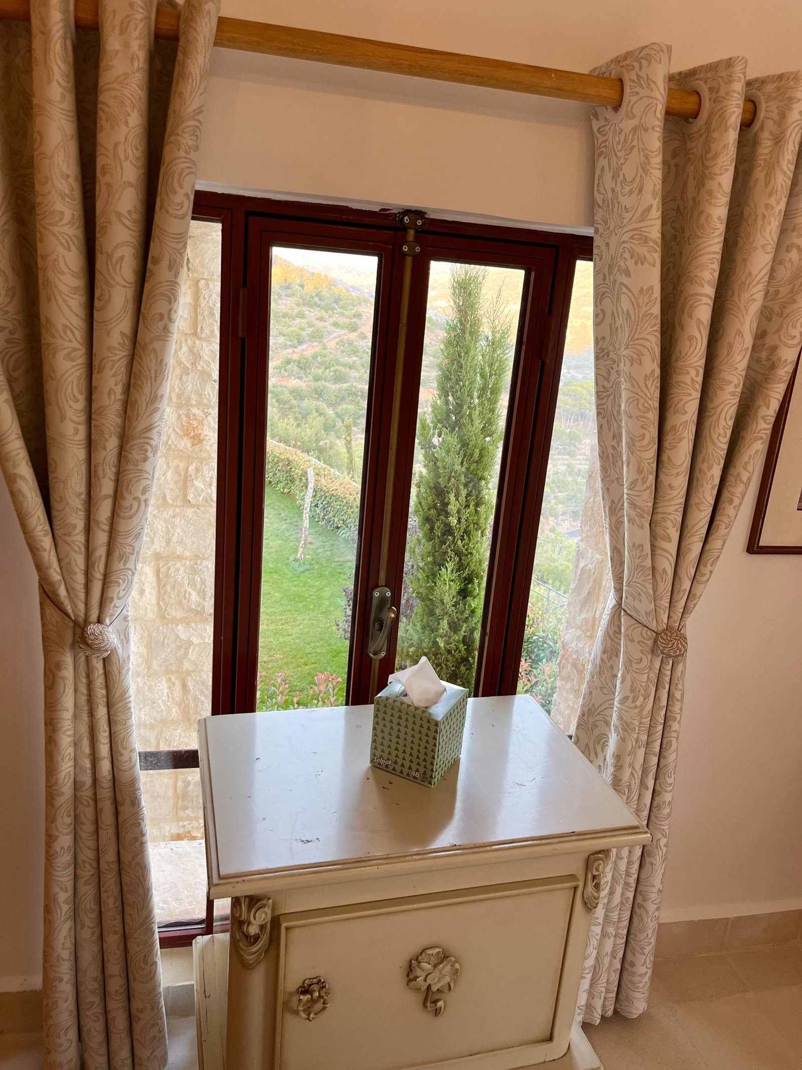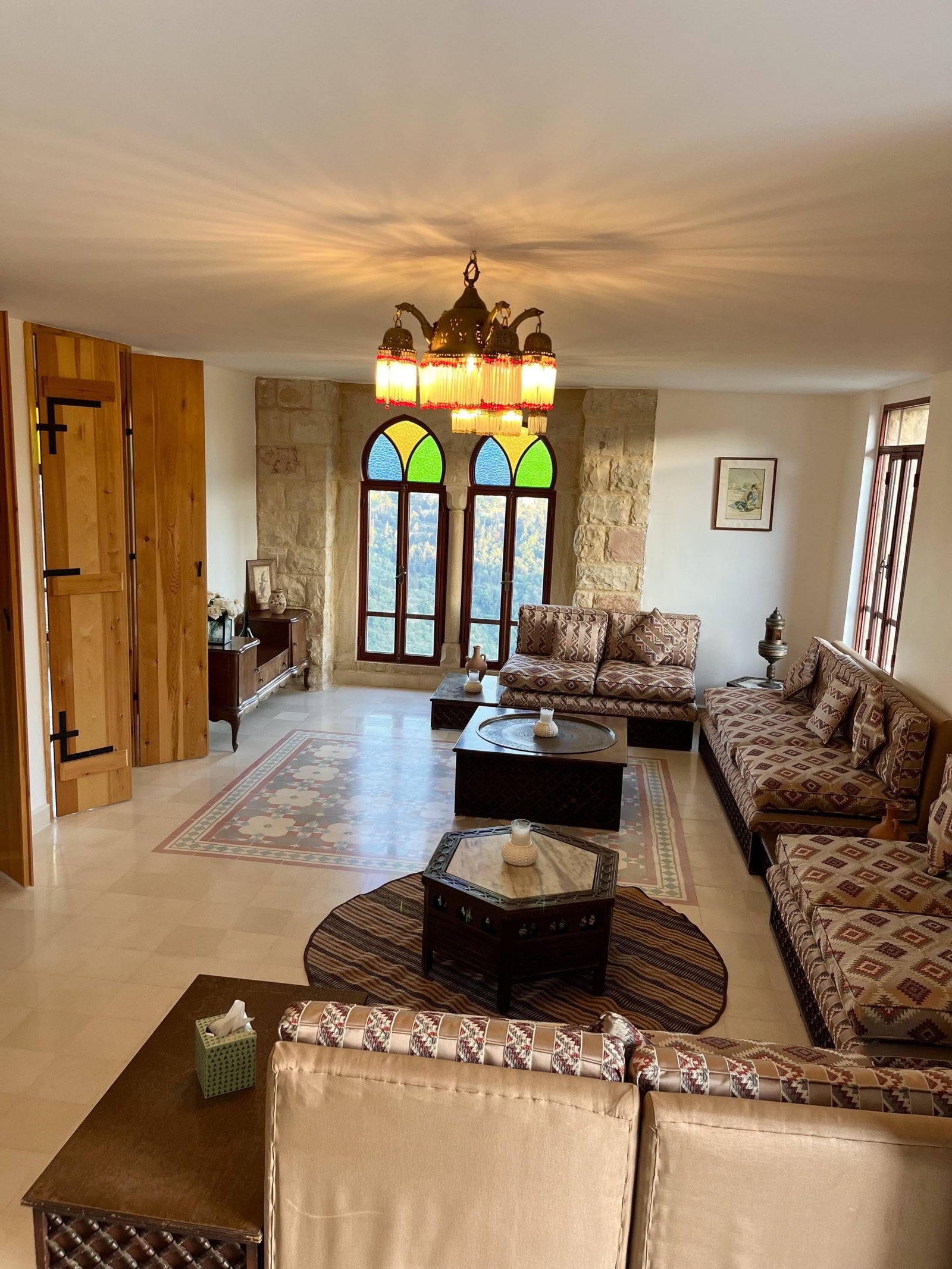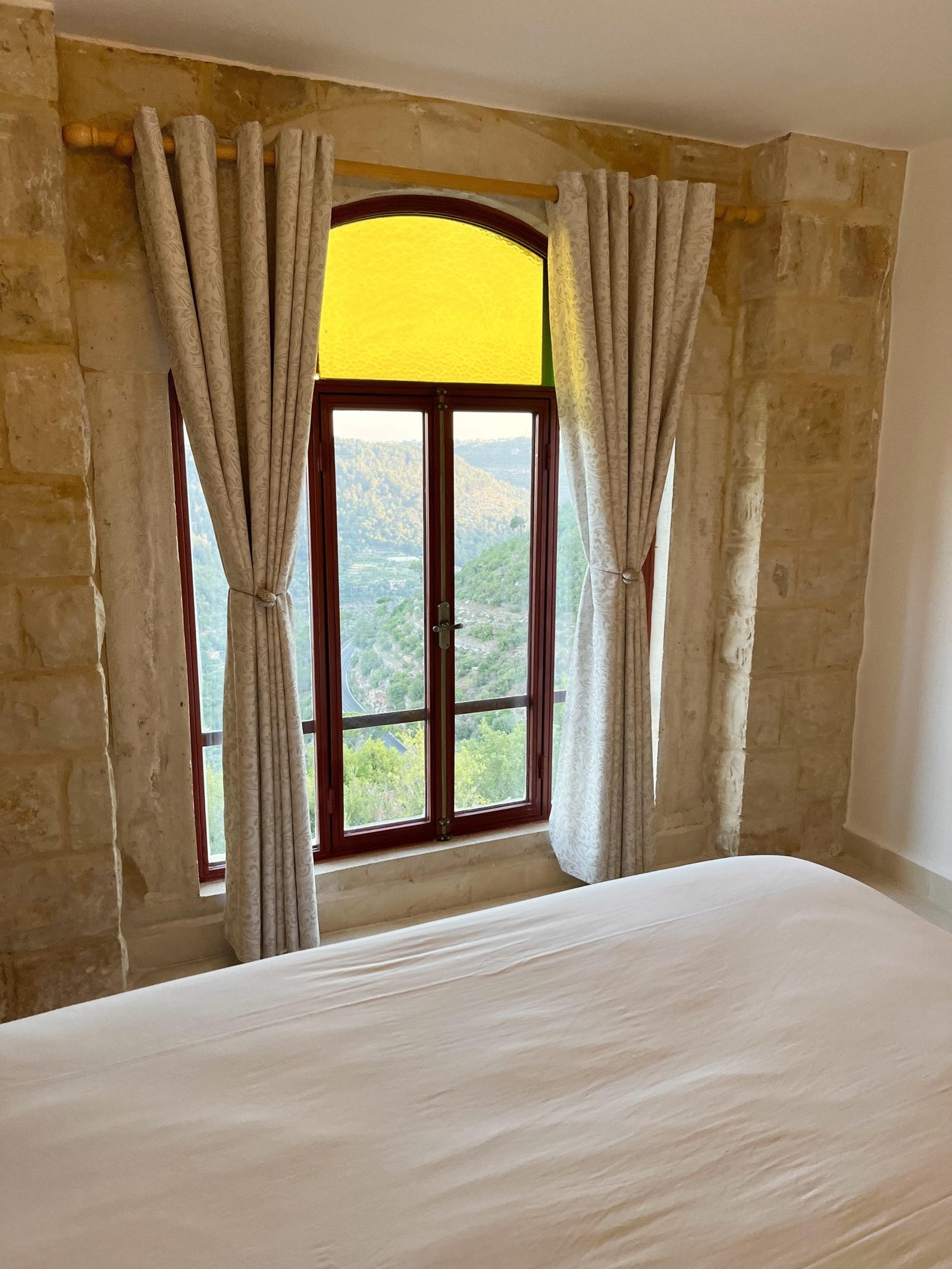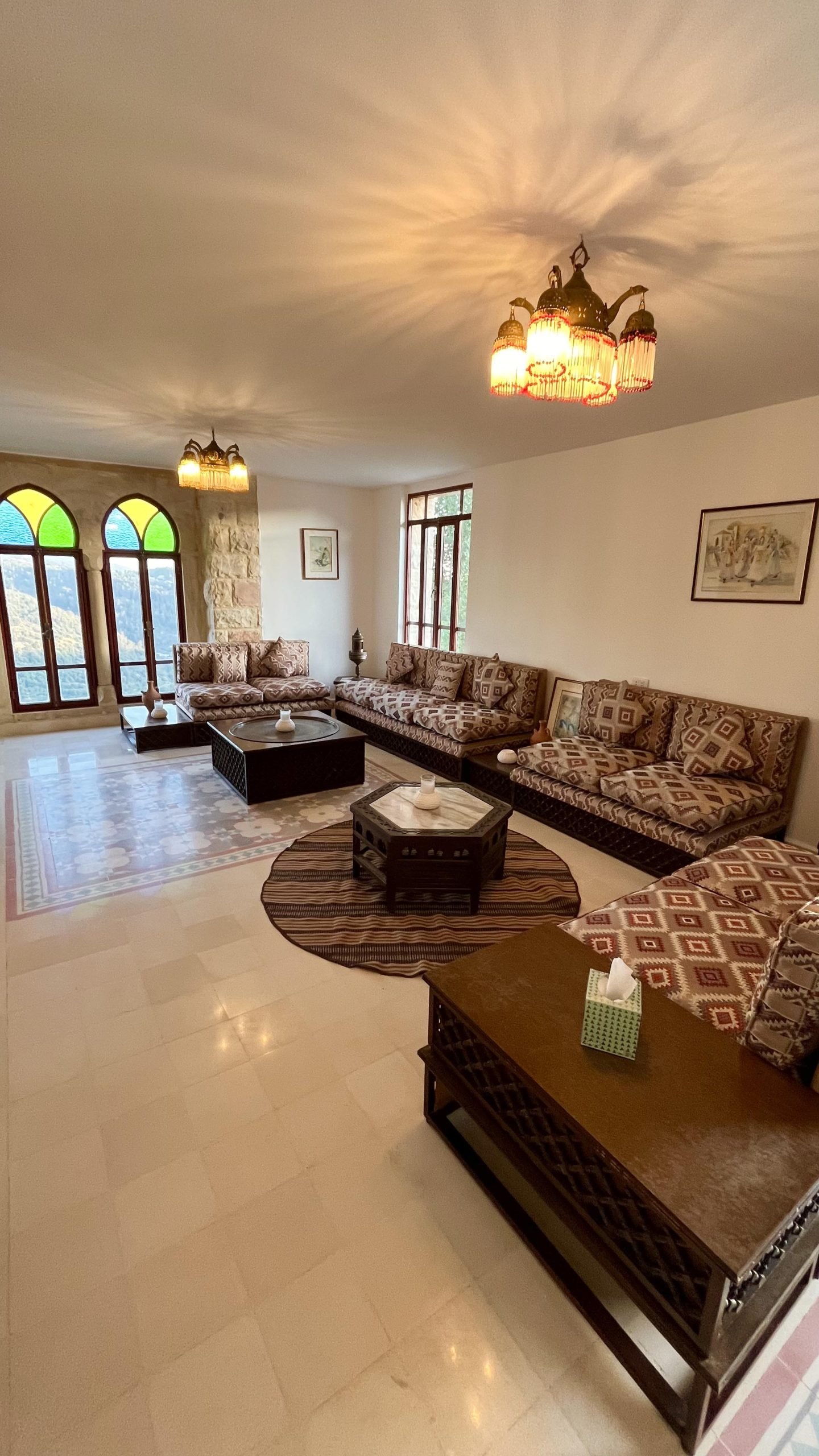 Mandaloun House is a spacious haven with two serene master bedrooms, a fully equipped kitchen, and an inviting majlis-style sitting area that opens to panoramic views of the Shouf hills. Rich in heritage and charm, the house features handcrafted stonework, colorful stained glass, and vintage-inspired furniture that celebrate Lebanon’s timeless architectural beauty. Whether you're gathering with family or simply savoring stillness, Mandaloun House offers warmth, space, and cultural authenticity.