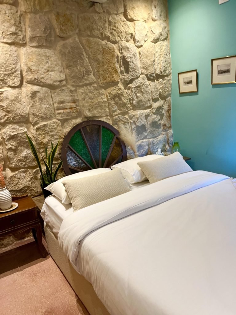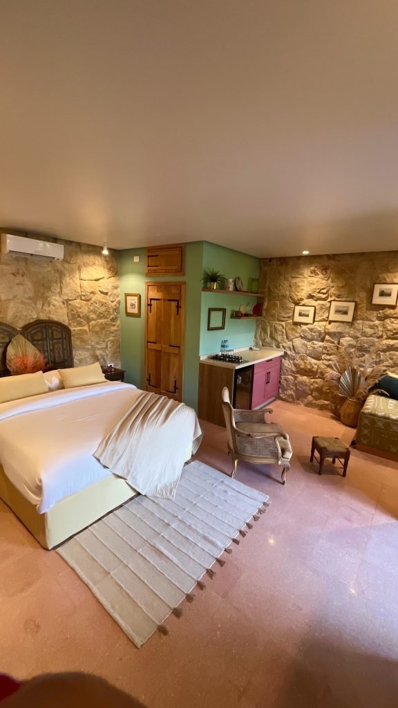 Fairuz Suite is a tribute to elegance and nostalgia. With its warm stone walls, vintage touches, and calming neutral tones, this suite offers a serene escape in the heart of the Chouf mountains. Featuring a spacious master bedroom, a cozy sitting area, and a private kitchen, it’s designed for comfort with a deep appreciation for tradition.
