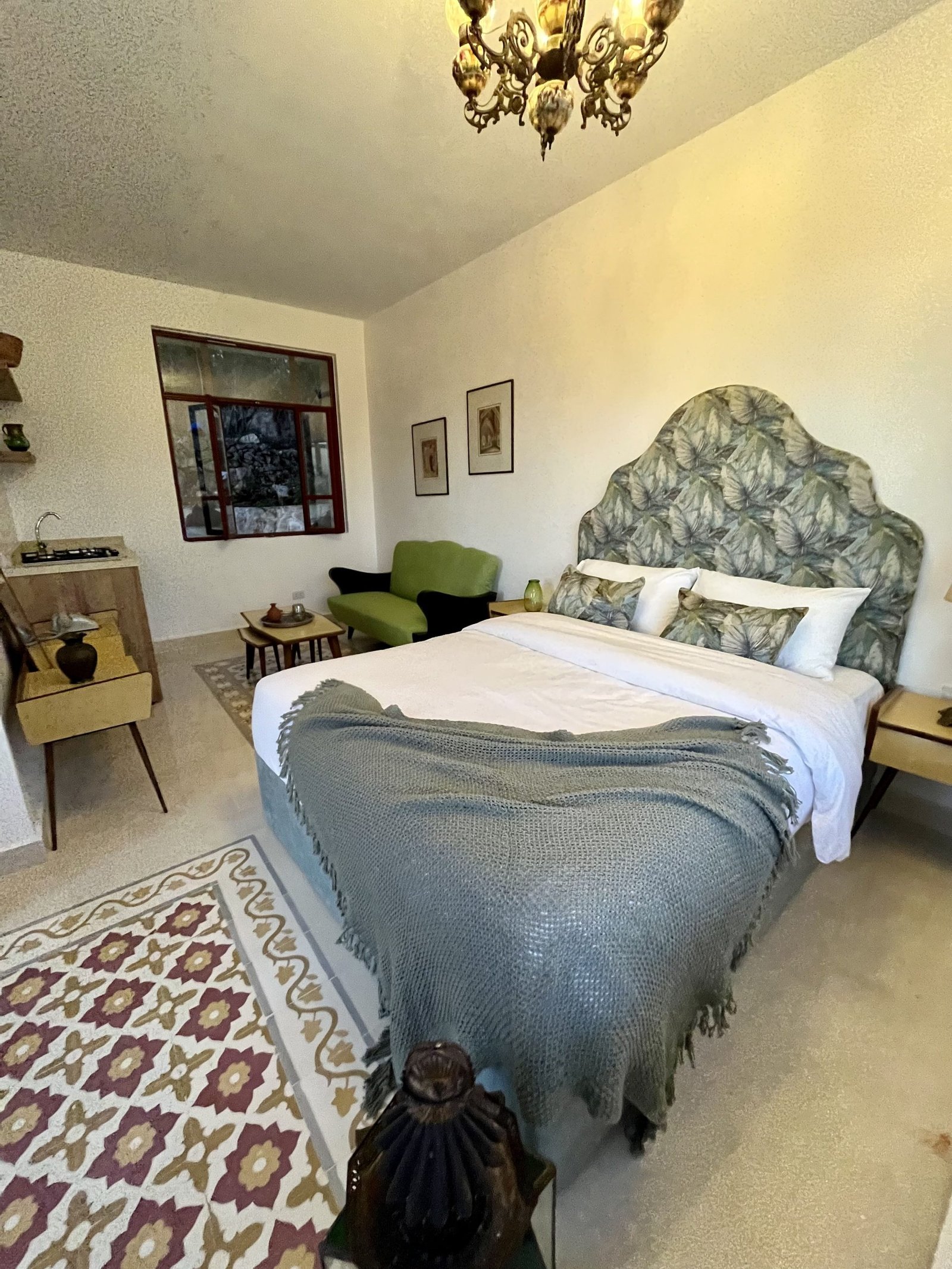 Welcome to the delightful Zayn Suite Room, where rustic elegance meets modern comfort! Enjoy your stay in this beautifully designed suite, featuring a spacious master bedroom and a well-equipped kitchen that flows seamlessly into a cozy sitting room. Perfectly accommodating 1 or 2 guests, the Zayn Suite is an idyllic retreat for couples or solo travelers seeking a tranquil escape. Immerse yourself in the charm of this lovely suite and create unforgettable memories during your stay. Your perfect getaway awaits—book now and experience the magic of the Zayn Suite!